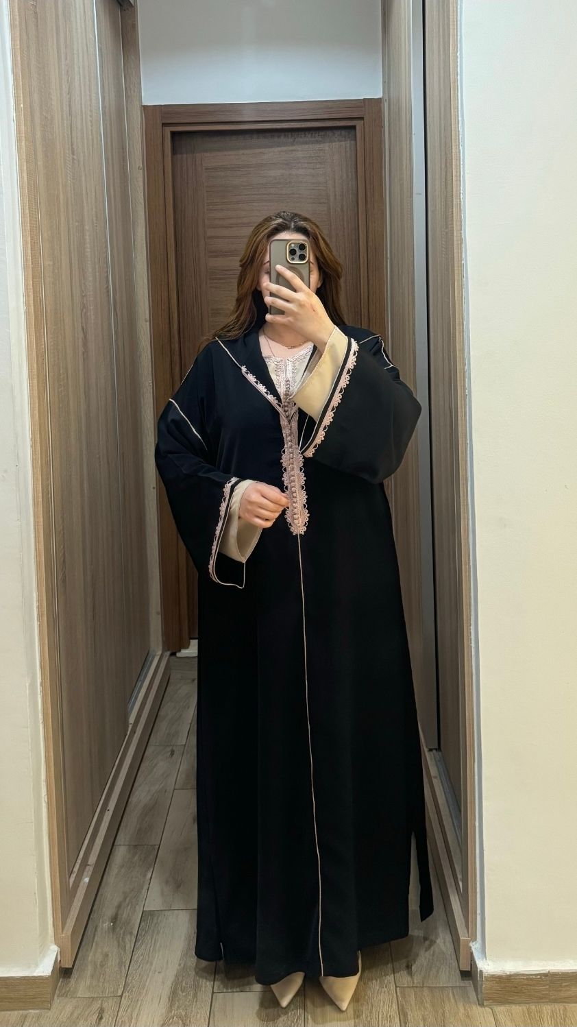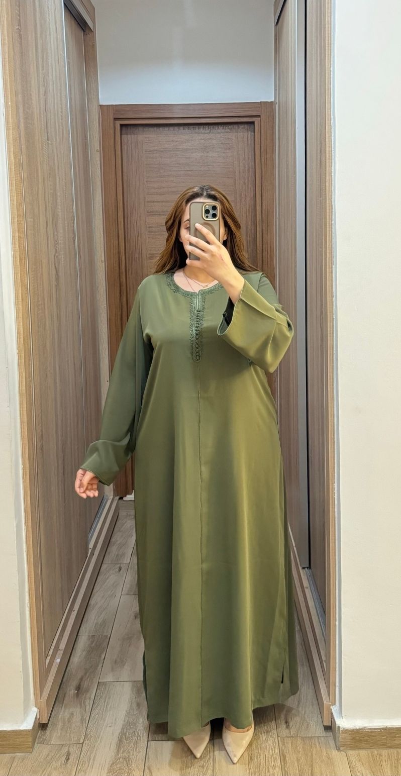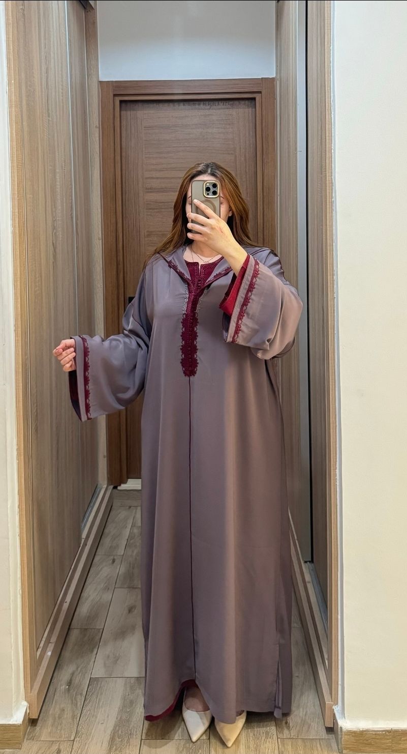 جلابة مغربية قطعتين (2 pièces) بتصميم أنيق وعصري، مثالية لإطلالة راقية فـ عيد الفطر والمناسبات الخاصة. الموديل كيتميز بقماش مريح وجودة عالية مع تفاصيل أنيقة كتعطي لمسة فخمة وبسيطة فـ نفس الوقت.