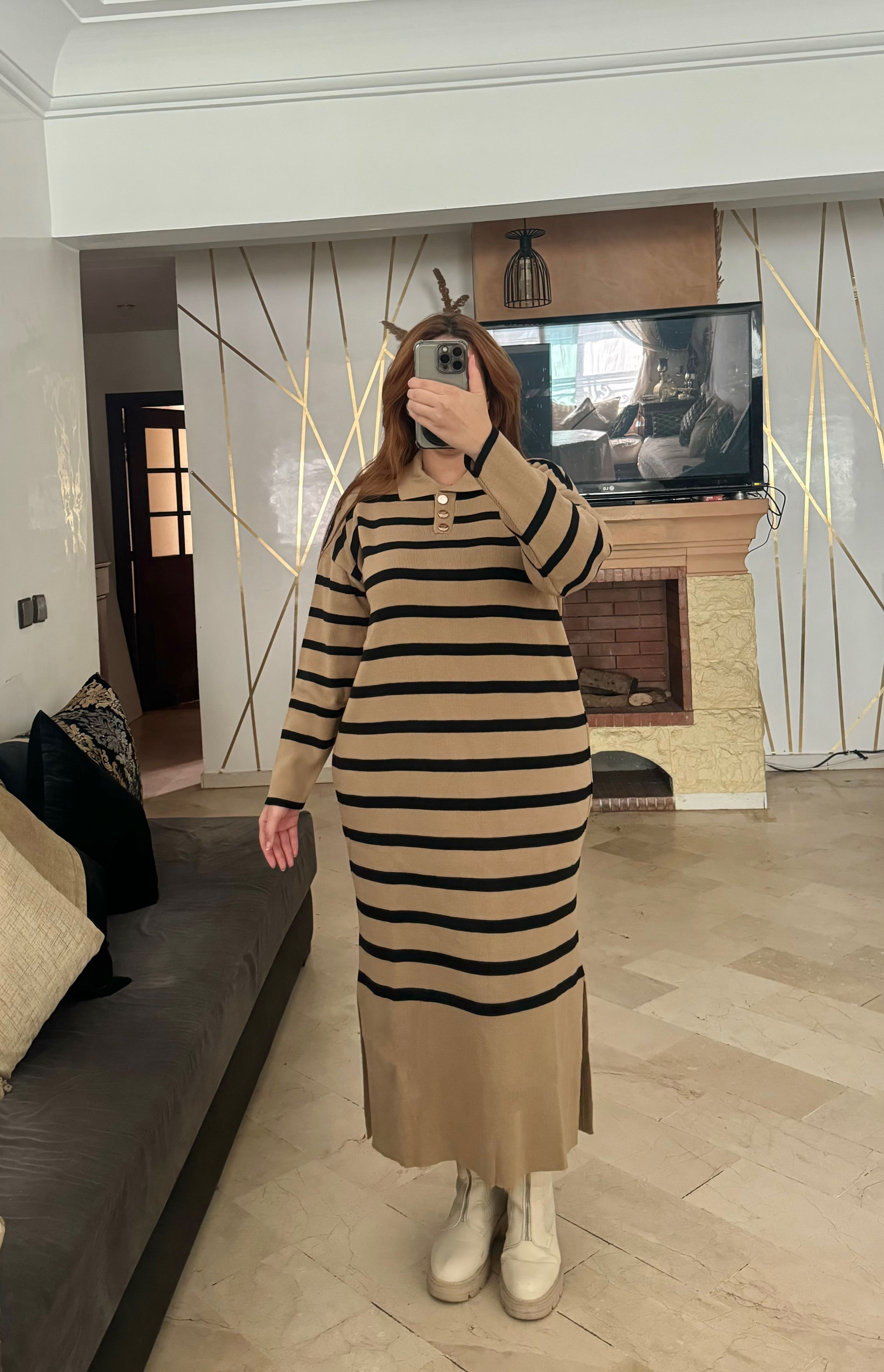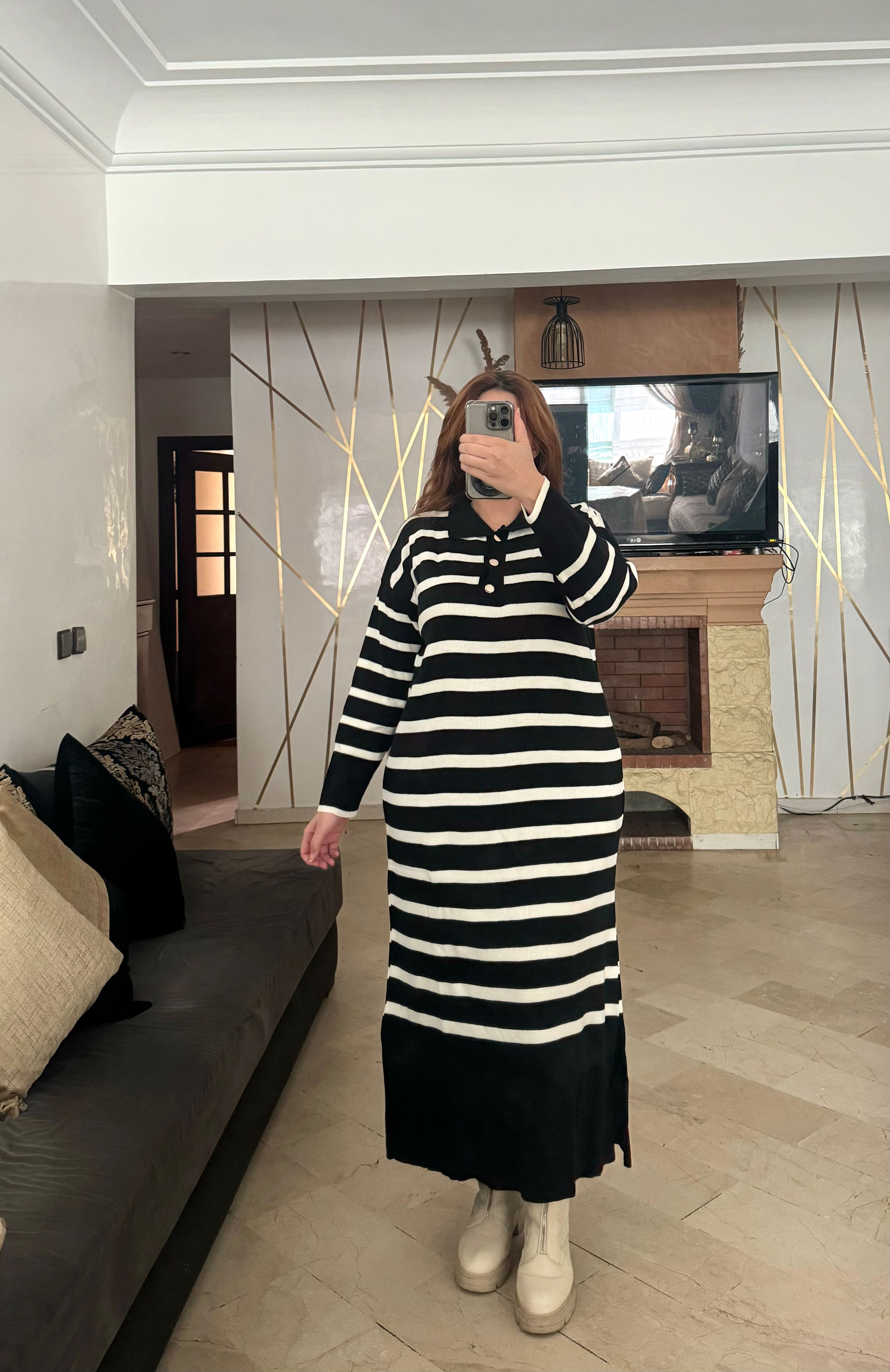 كسوة راقية جاية بخطوط زوينة ومرتّبة، كتعطي واحد الجمالية فالبساطة والأناقة ف نفس الوقت. مصنوعة من ثوب ناعم ومرتاح، كيجلس مزيان على الجسم وكيعطي واحد اللوك عصري ومهذب. الأزرار فالأمام مضايفين بلمسة أنيقة كيزيدو يكمّلو التصميم الراقي. قطعة مثالية للخرجات اليومية وللمناسبات الهادئة، وضرورية فخزانة أي سيدة كتبغي الستايل الشيك بلا تكلف.