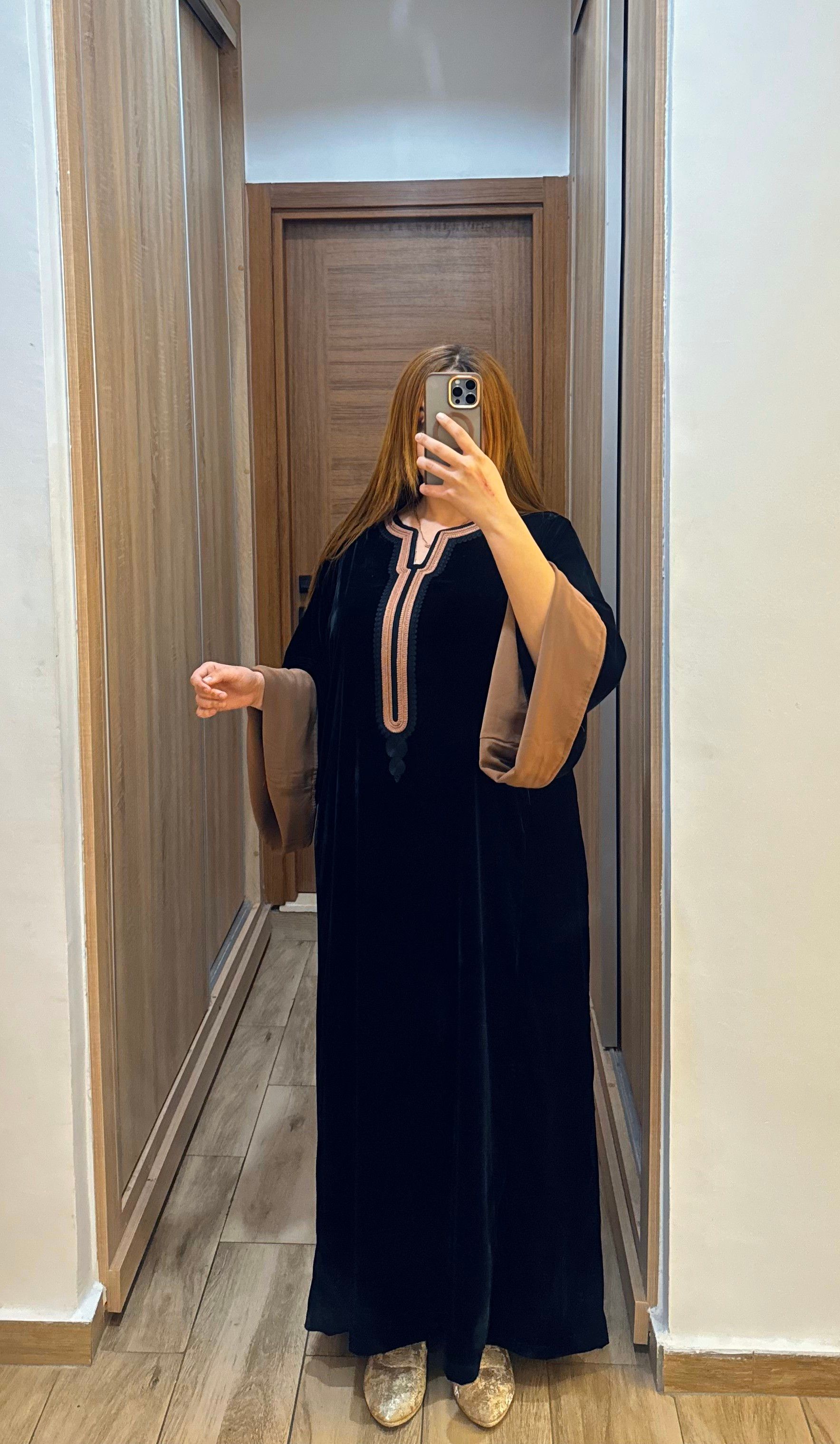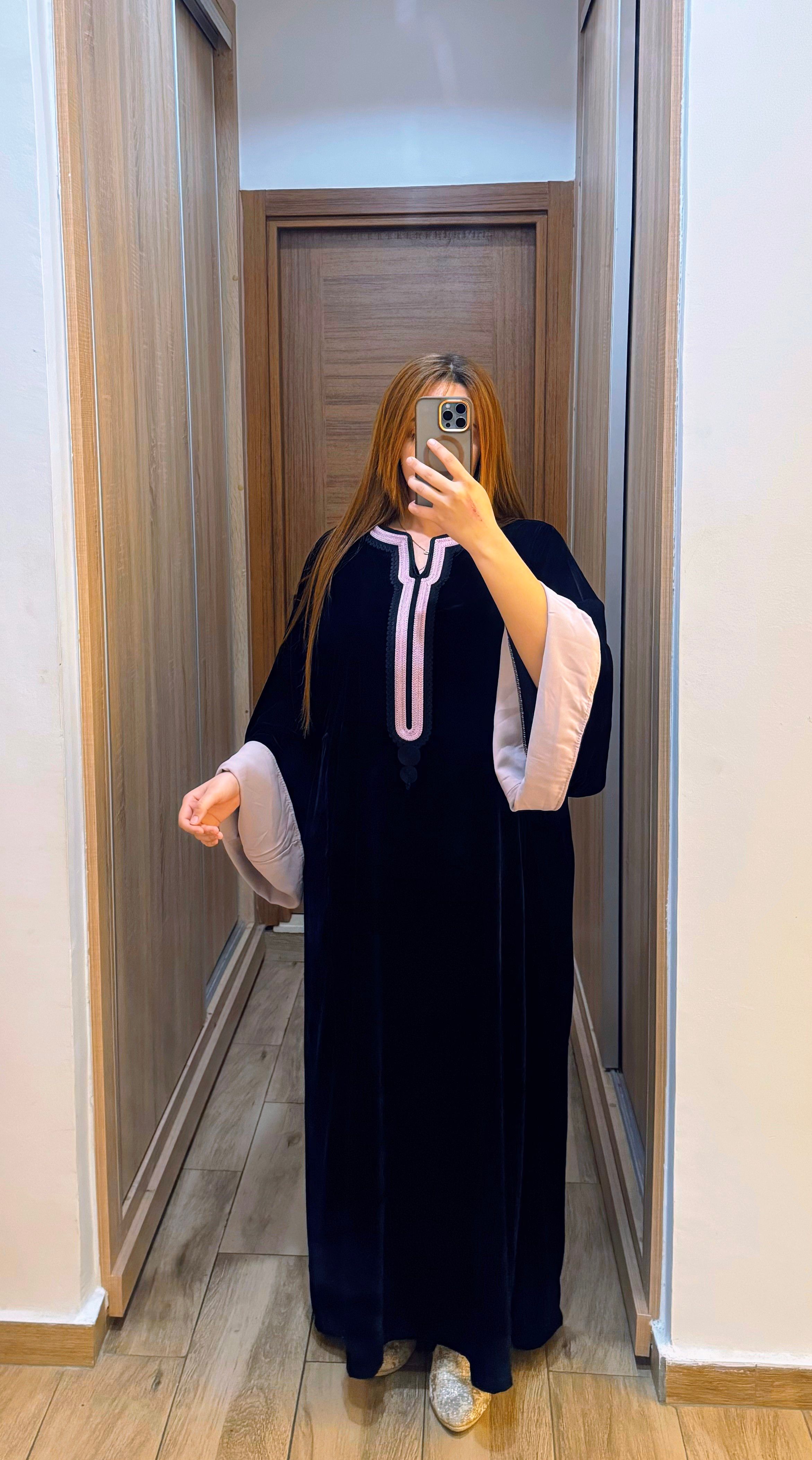 القماش مبرا بجودة عالية، مريح فلبسو وكيعطي دفء وأناقة فـ نفس الوقت، مناسب للعيد والمناسبات الخاصة. اللون الأسود الكلاسيكي مع تفاصيل التطريز كيخلي القفطان يبان فخم وسهل التنسيق مع الإكسسوارات.