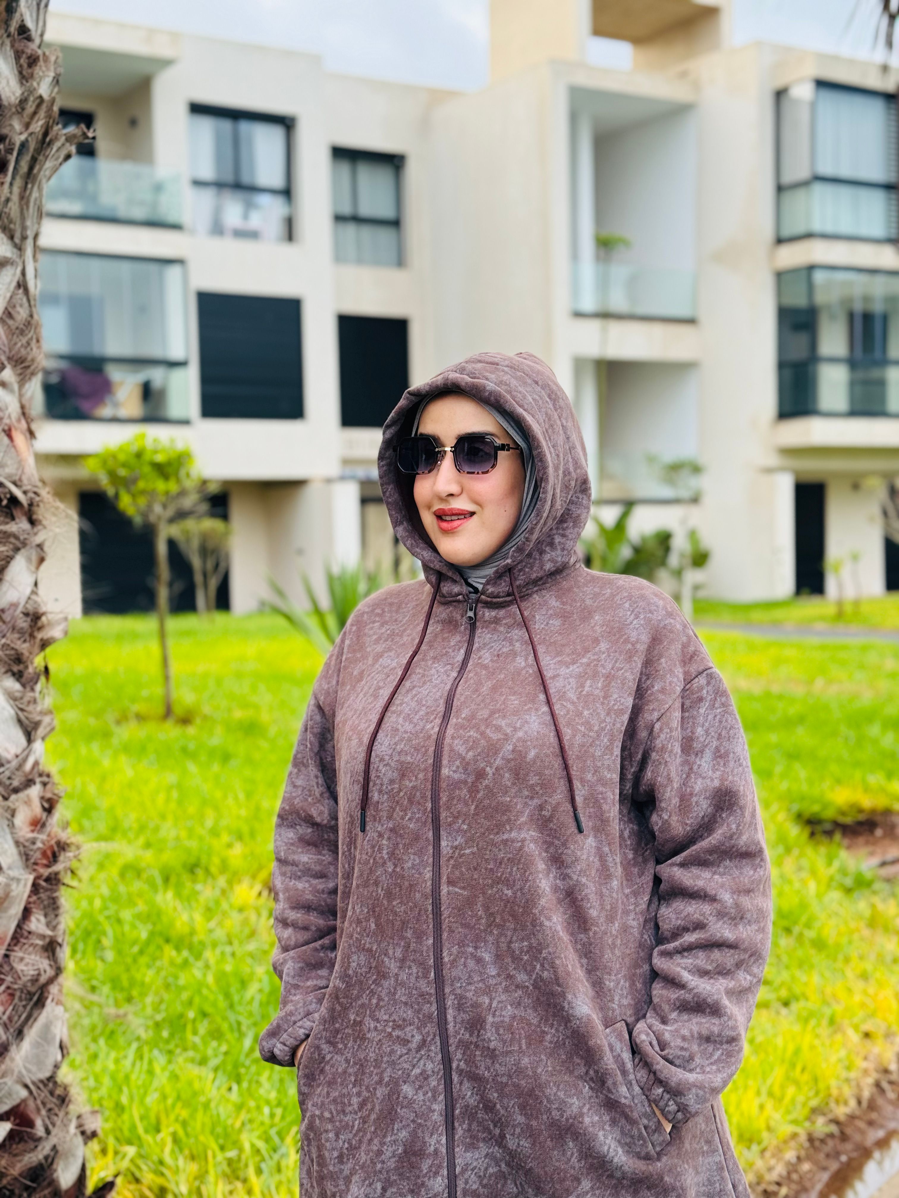 الثوب من نوع المونطوني المبطن (تركي)، مبطّن من الداخل بقطن ناعم بطريقة غير ظاهرة (invisible)، باش يعطيك الدفء والنعومة بلا ما يزيد فالسماكة ديال اللبسة.